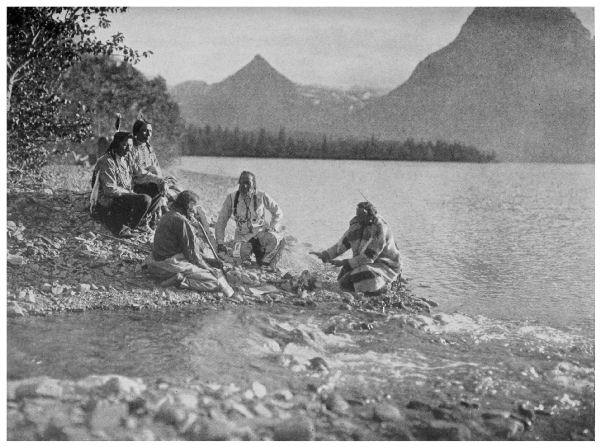 On this day, halting here and there along the lake, we took some views of the scenery and of our people, and at sunset were back in our lodges. For some of us it is a last trip over the old, familiar ground. My two old friends, [Pg 216] Tail-Feathers-Coming-over-the-Hill and Yellow Wolf, must soon go on to their Shadow Land!