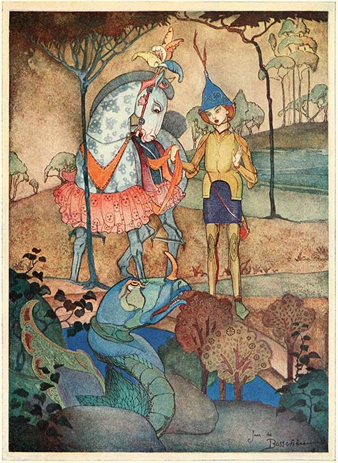 “There are delightful stories; even more attractive than the letterpress are M. de Bosschère’s illustrations. Conceived with inexhaustible fancy, full of quaint detail, and set down with a fascinating naïveté they embody the characters and scenes of the tales with a fullness of particularism that should provide endless entertainment to youthful readers. They are the best and most complete series of designs yet produced by the artist.”—Connoisseur.