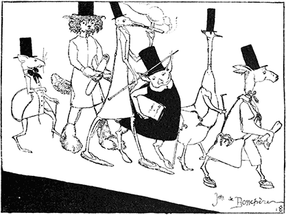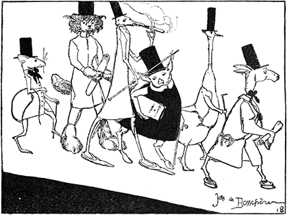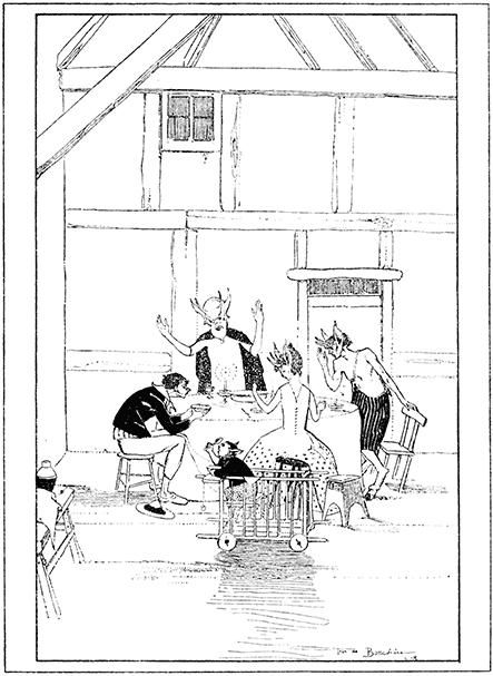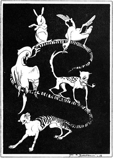 “The illustrations by Jean de Bosschère are of a droll fancy. The artist has a notable power of the grotesque, and both in colour and black and white he uses it.”—Daily Telegraph.