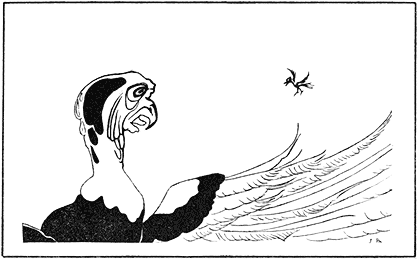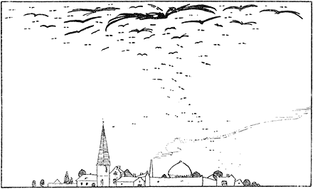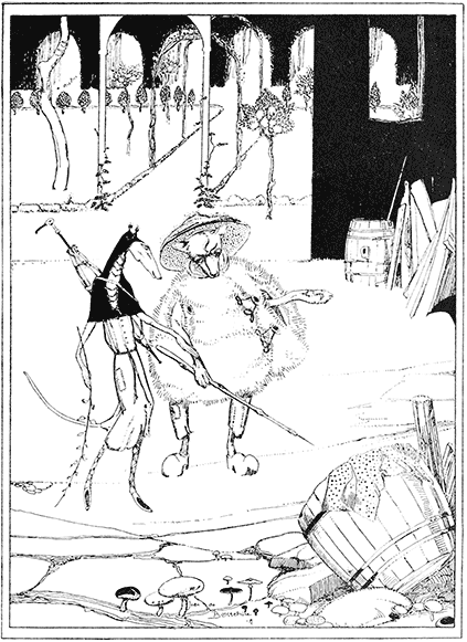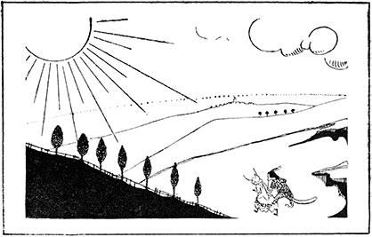 The old witch made her way back to the tower, and the things she said were so terrible that the very air was poisoned, and the grass by the roadside withered and turned black. No sooner had she set foot within her doorway, however, than she crumbled to dust, and a wind arose and blew the dust to all quarters of the heavens.