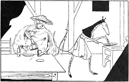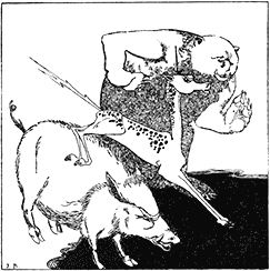 The poor dog looked very sheepish, and had not a word to say for himself. He puzzled over the matter until his head ached, and at last he came to the conclusion that he must have been sleep-walking and have stolen the grease without knowing it—a conclusion with which the wolf entirely agreed.