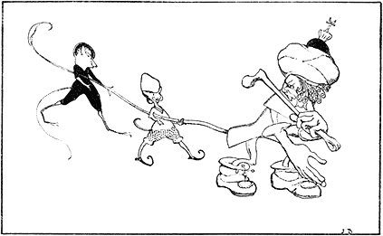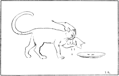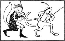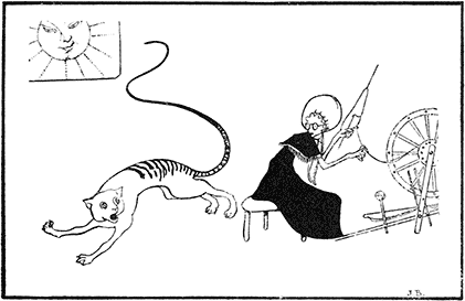 So that was the end of the old witch, for her power ceased as soon as one of her victims managed to escape. As for the black cat, nobody ever saw him again, but it was whispered[179] that he was really a Prince whom the wicked old crone had captured years before, and given the shape of a cat by enchantment. By helping Margot to escape he had released himself from the spell that bound him, and was enabled to return to his father’s kingdom.