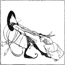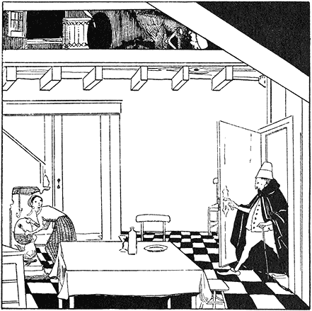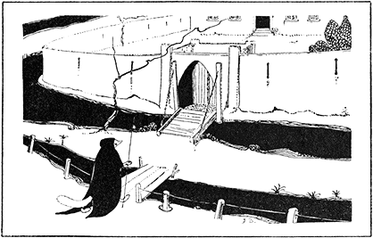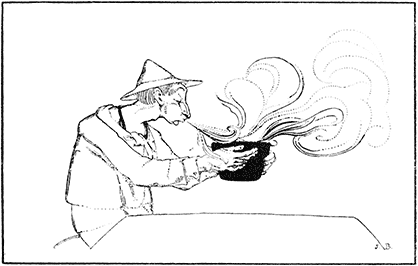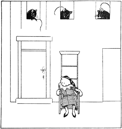 Once upon a time there was a wicked old witch who lived all alone in the topmost chamber of a tall and gloomy tower. There she sat day after day with her ugly head resting on her hands, peering out through a slit in the wall upon the countryside. Her only companion was a big black tom-cat, who sat by her side in the darkened chamber, his eyes shining like green fire in the gloom.