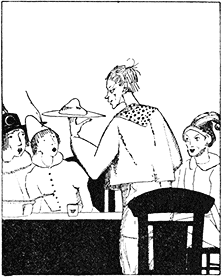 Margot told her, and the witch said: “You must be very tired with walking all that way. If you will come to my house I will give you a bowl of milk and a slice of currant cake, and you shall see all the wonderful things that I keep in my cupboards.”