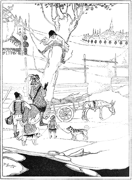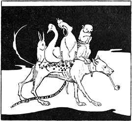 The dog had no suspicion of the way he had been deceived, and all went well until the winter came and food became difficult to procure. Then one day the dog said: “It seems to me that the time has come to tap our barrel of grease. What do you say, friend? Weren’t we wise to put it away for a time like this!”