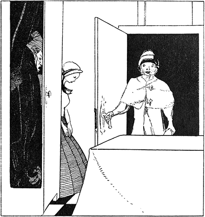 “I am the witch’s cat,” the voice went on. “I am going to push the key of the cupboard underneath the door. Take it and let yourself out, but make haste, for you have no time to waste!”