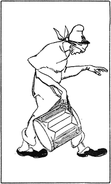 Presently, having made sure that the dog was slumbering peacefully, he arose and tiptoed softly down to the cellar. There he collected with his long tongue, every bit of the grease that still remained sticking to the sides and bottom of the barrel, and returning to the sleeper, carefully smeared the grease over his jaws, back, and thighs. Several times he did this, until the dog was covered with a thin greasy film. Then he lay down again and once more pretended to sleep.