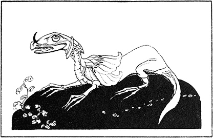 A short time afterwards the witch came home, and when she discovered that her prisoner had escaped she howled with rage. Mounting to the very roof of the tower, she gazed out upon the countryside, and soon descried the figure of the[178] little girl, running as fast as she could in the direction of her home.