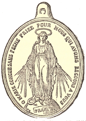 According to her testimony, the Most Holy Virgin had appeared to her, these apparitions were repeated various times, she had been charged to acquaint her Director with what she had seen and heard, an impor[13]tant mission had been confided to her, that of having struck and circulated a medal in honor of the Immaculate Conception.