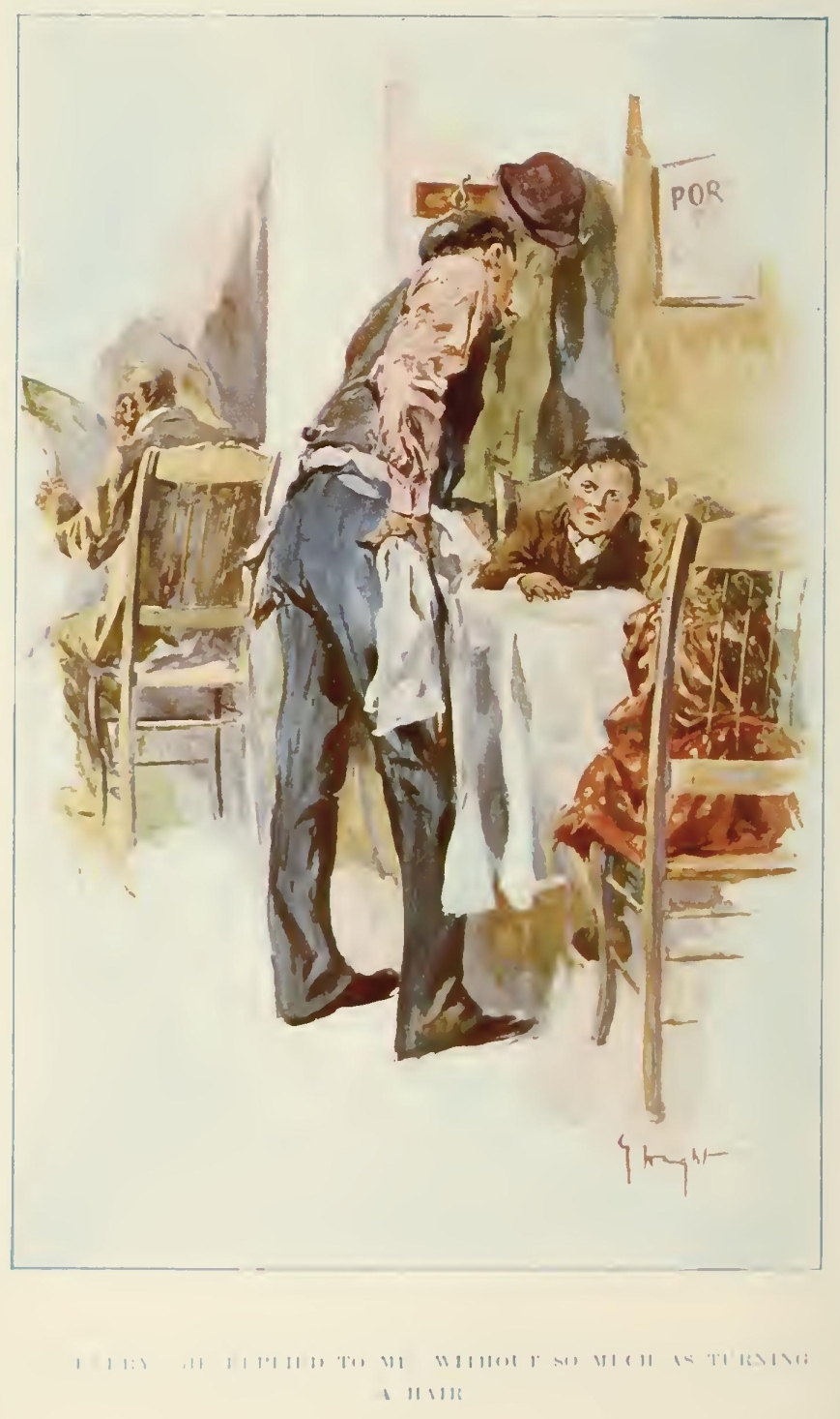 “But all the time Marie herself was just going from bad to worse. She had come to the Cafe a light-hearted, sweet-tempered girl; now, when she wasn't engaged in her play-acting—for that's all it was, I could see plainly enough—she would go about her work silent and miserable-looking, or if she spoke at all it would be to say something bitter. Then one morning after a holiday she had asked for, and which I had given her without any questions, she came to business more like her old self than I had seen her since the afternoon Master Tom Sleight had appeared upon the scene. All that day she went about smiling to herself; and young Flammard, presuming a bit too far maybe upon past favours, found himself sharply snubbed: it was a bit rough on him, the whole thing.