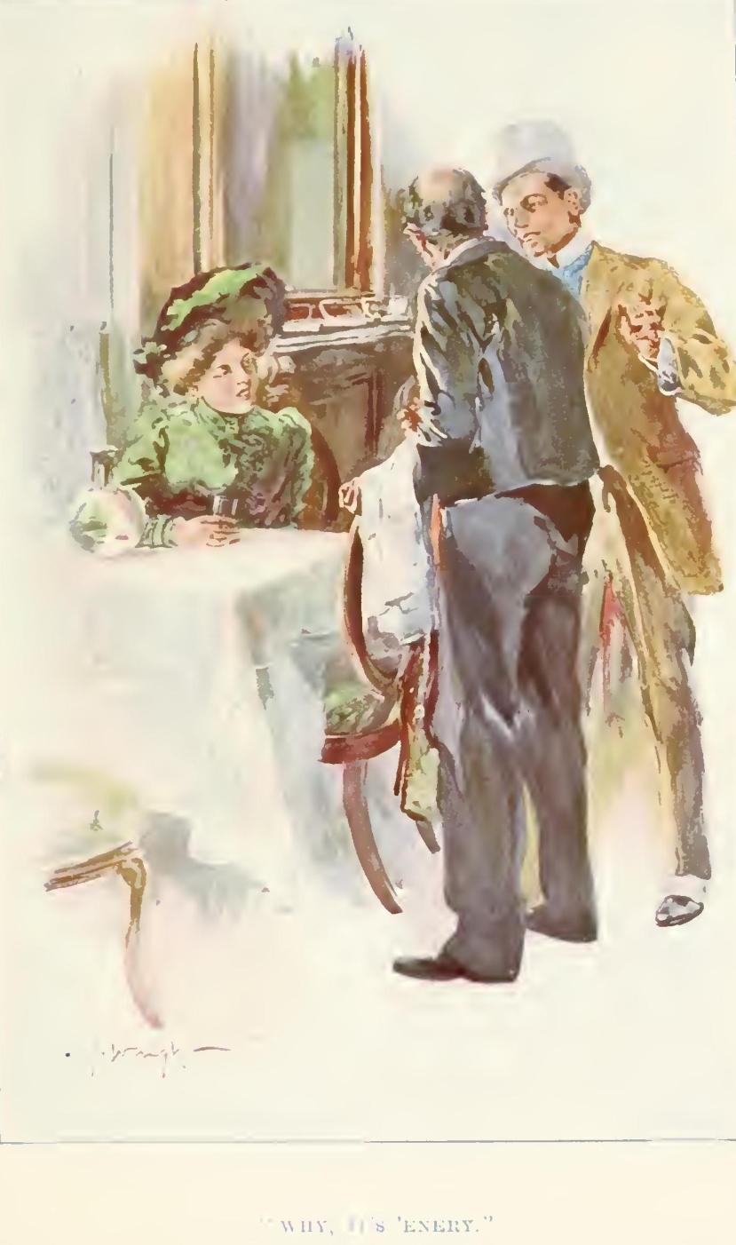 “I was making it short,” retorted Henry, in an injured tone, “for your benefit; if you want to have the whole of it, of course you can. He wasn't a scamp; he was just a scatterbrain—that was the worst you could say against him. He tried to communicate with her, but never got an answer. Then he wrote to the father, and told him frankly the whole story. The letter came back six months later, marked—'Gone away; left no address.' You see, what had happened was this: the old man died suddenly a month or two after the marriage, without ever having heard a word about it. The girl hadn't a relative or friend in the town, all her folks being French Canadians. She'd got her pride, and she'd got a sense of humour not common in a woman. I was with her at the Grand Central for over a year, and came to know her pretty well. She didn't choose to advertise the fact that her husband had run away from her, as she thought, an hour after he had married her. She knew he was a gentleman with rich relatives somewhere in England; and as the months went by without bringing word or sign of him, she concluded he'd thought the matter over and was ashamed of her. You must remember she was merely a child at the time, and hardly understood her position. Maybe later on she would have seen the necessity of doing something. But Chance, as it were, saved her the trouble; for she had not been serving in the Cafe more than a month when, early one afternoon, in walked her Lord and Master. 'Mam'sell Marie,' as of course we called her over there, was at that moment busy talking to two customers, while smiling at a third; and our hero, he gave a start the moment he set eyes on her.”