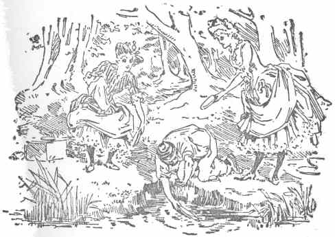 Twenty minutes later, three figures, followed by a shamed-looking dog, might have been seen creeping stealthily from the boat-house at the “Swan” towards the railway station, dressed in the following neither neat nor gaudy costume: