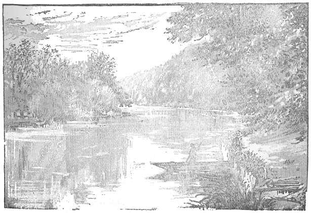 The river—with the sunlight flashing from its dancing wavelets, gilding gold the grey-green beech-trunks, glinting through the dark, cool wood paths, chasing shadows o’er the shallows, flinging diamonds from the mill-wheels, throwing kisses to the lilies, wantoning with the weirs’ white waters, silvering moss-grown walls and bridges, brightening every tiny townlet, making sweet each lane and meadow, lying tangled in the rushes, peeping, laughing, from each inlet, gleaming gay on many a far sail, making soft the air with glory—is a golden fairy stream.