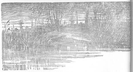 But the river—chill and weary, with the ceaseless rain-drops falling on its brown and sluggish waters, with a sound as of a woman, weeping low in some dark chamber; while the woods, all dark and silent, shrouded in their mists of vapour, stand like ghosts upon the margin; silent ghosts with eyes reproachful, like the ghosts of evil actions, like the ghosts of friends neglected—is a spirit-haunted water through the land of vain regrets.