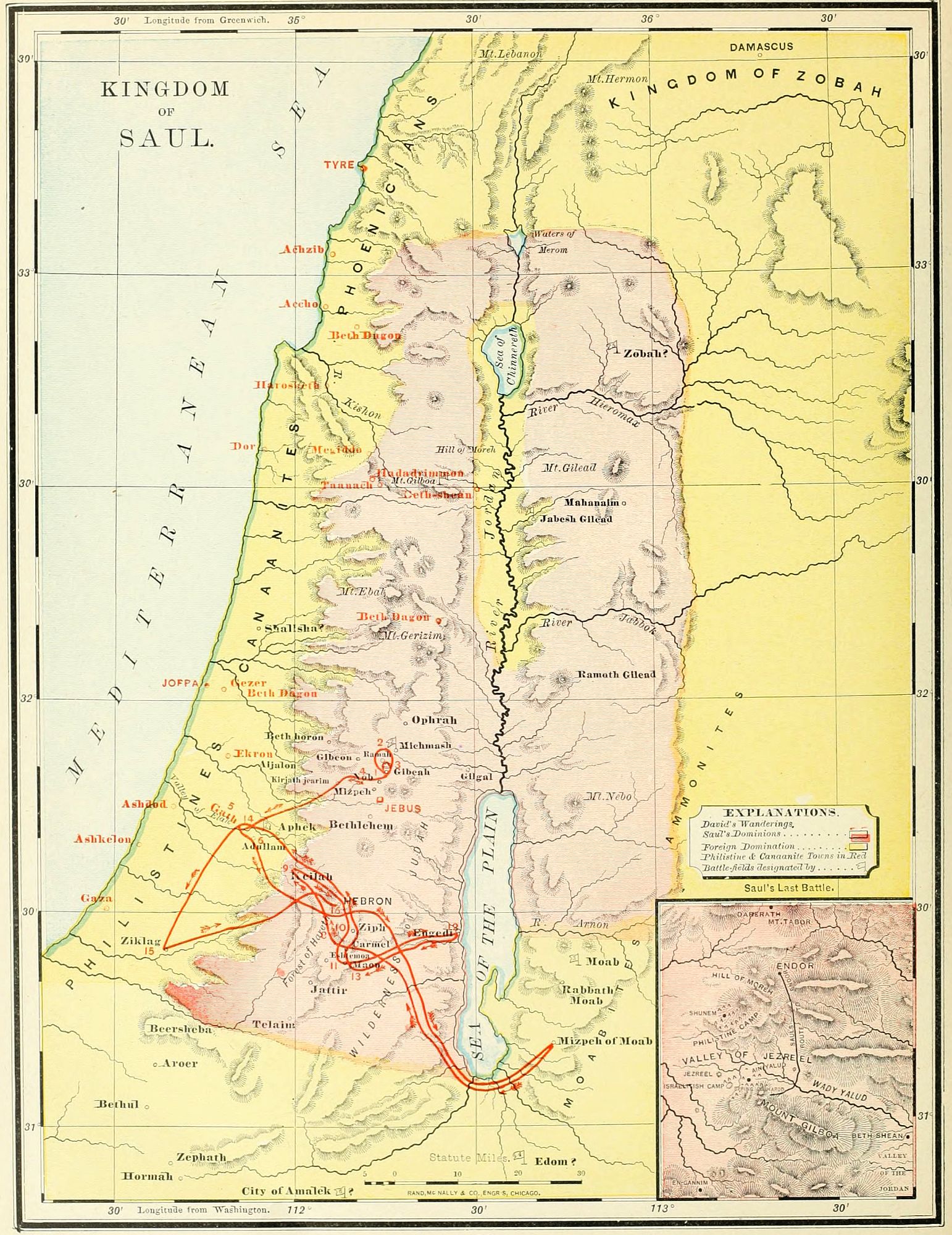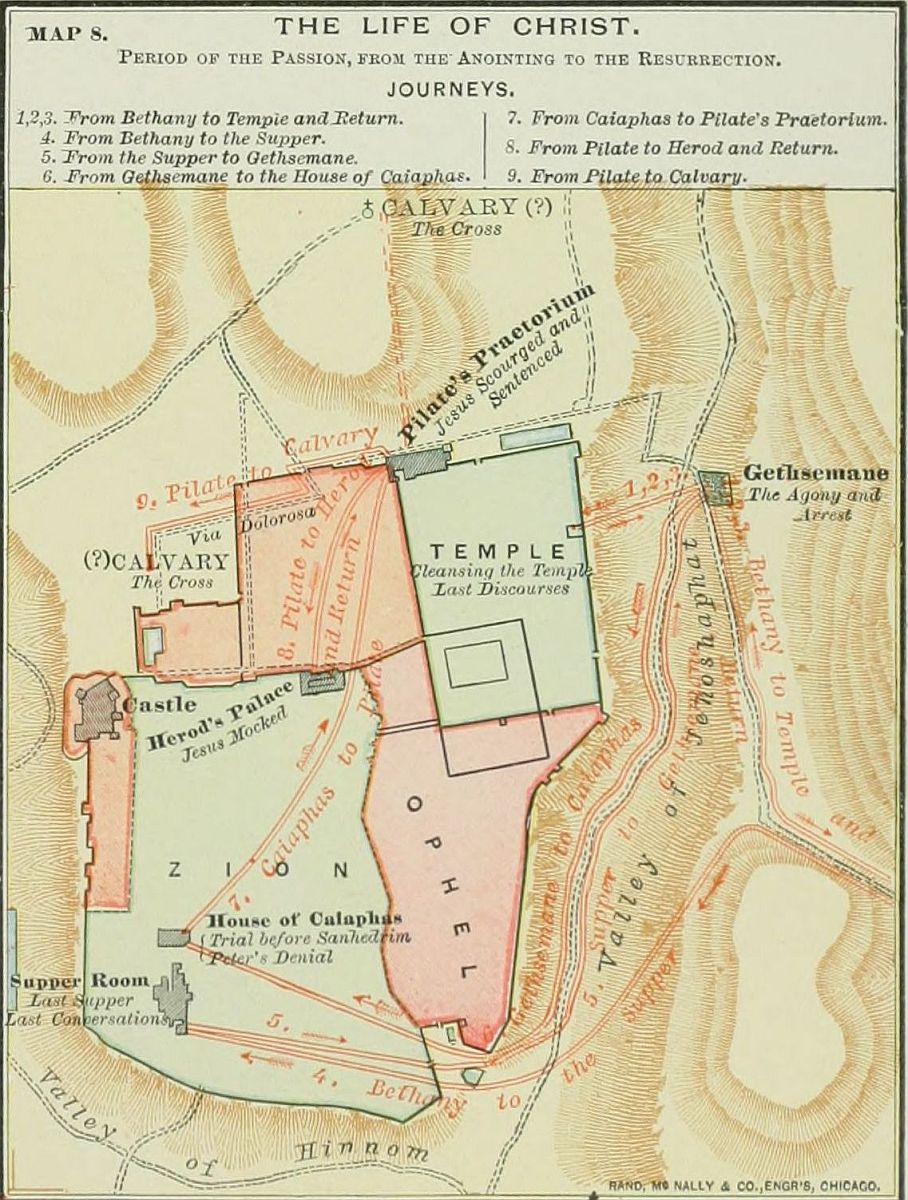 During ten years of my pastoral life, wherever the itinerant system of my church placed me, I held on every Saturday afternoon, in the lecture-room of my church, a class to which old and young, and the representatives of all denominations, were admitted. It was called "The Palestine Class," and was devoted to the study of Bible history and geography. An outline of facts, prepared in catechetical form, was printed, and committed to memory by every pupil. Difficult old Hebrew names of lands, cities and mountains, were arranged in a rhythmic way, and chanted after the manner of the old-time "singing geography" classes. Answers were given in concert to help the memory, and personal examinations were afterward conducted to test it. The class constituted an "ideal company of tourists to the far East." The course of lessons was divided into five sections, covering the whole of Bible history. As each member, passing a personal examination, gave proof that he had thoroughly mastered "Section One," he was constituted a Pilgrim to the Holy Land, and given a certificate to that effect. Having studied "Section Two," and passed a satisfactory examination, he was made a Resident in Palestine, and his name was associated with one town or mountain. In that way every principal place on the map was associated with the name of some member, who was held responsible to the class for information concerning its history and present condition. An examination in "Section Three" made our "pilgrim" and "resident" a Dweller in Jerusalem. Having been examined in "Section Four," he was made an Explorer of other Bible lands, and was located on some mountain, or city of Egypt, Arabia, Chaldea, Asia Minor, etc. A final examination made him a Templar.[vi]