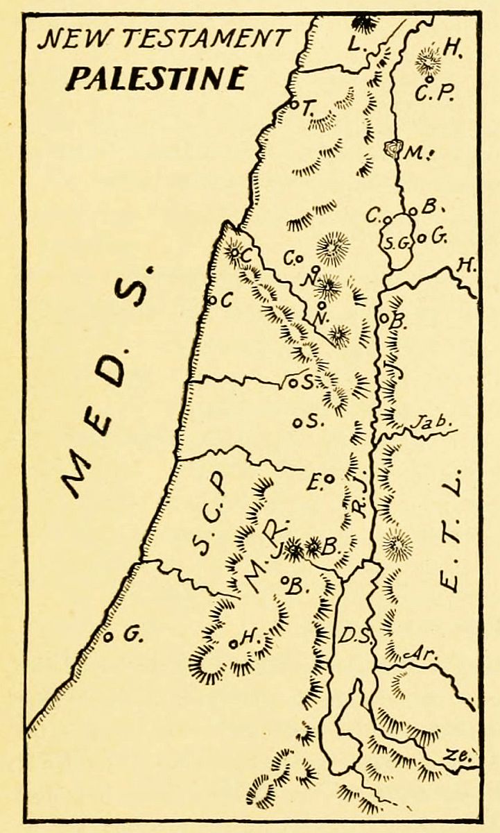 1. Approaching from the Mediterranean one meets first a sea-coast plain two or three miles wide at the north, but widening, as it goes southward, to nearly twenty miles at Gaza.