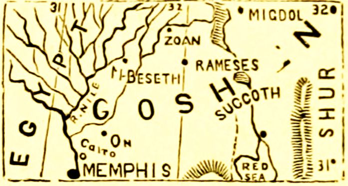 13.) E´gypt, on the northeast corner of Af´ri-ca (Gen. 12. 10; 37. 28).