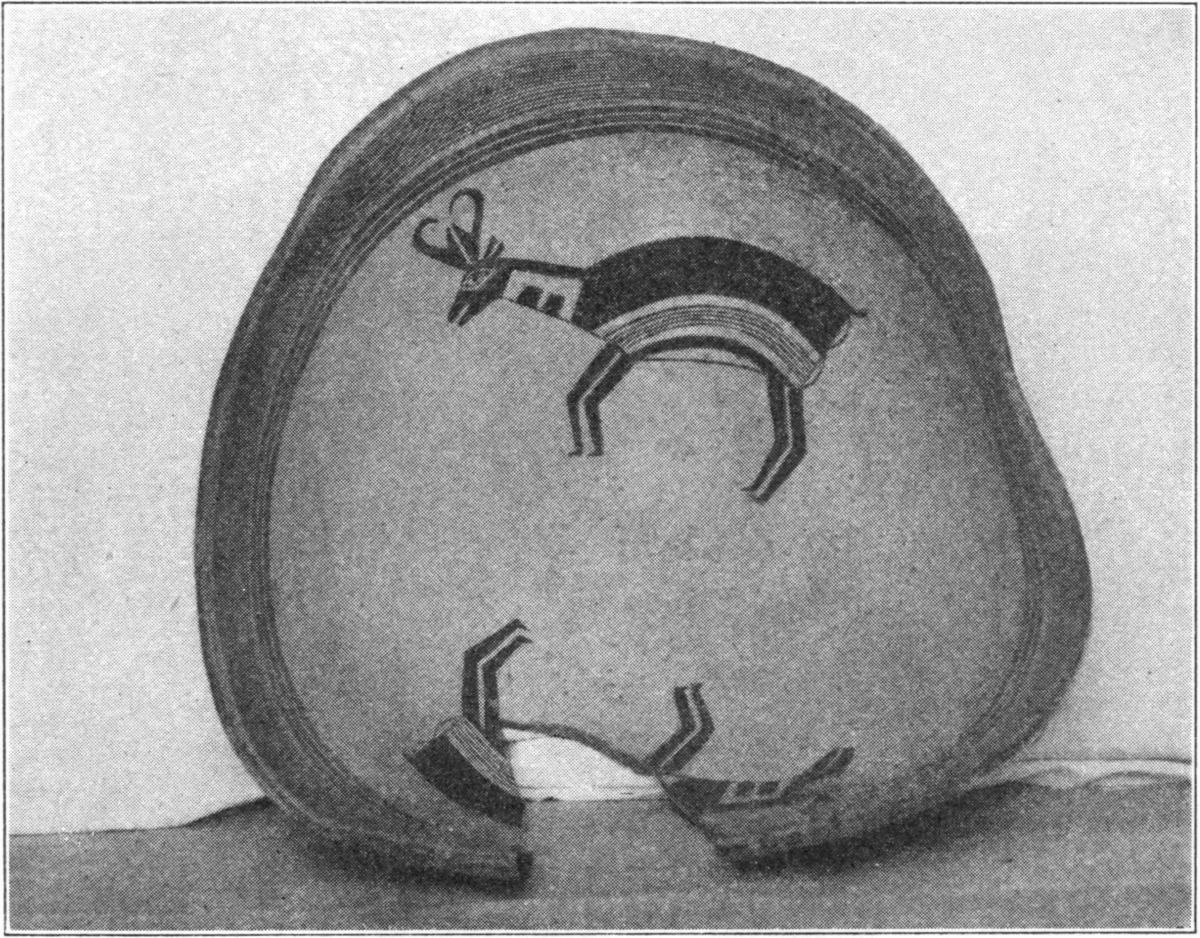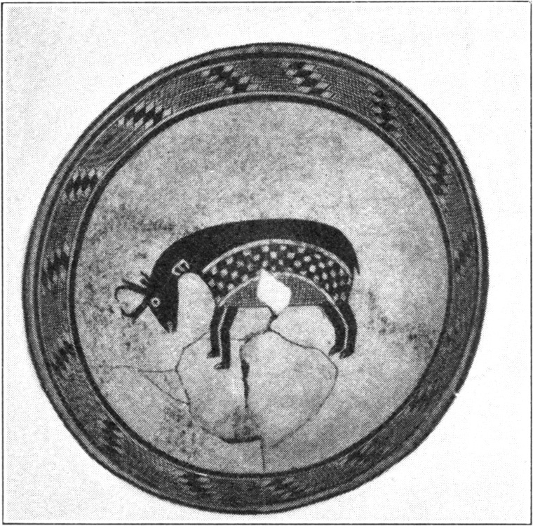 There is a bowl on exhibition in the Chamber of Commerce at Deming with a picture of a quadruped resembling a deer, but the base is so fractured in killing that it is difficult to determine the shape of the body or its decoration.