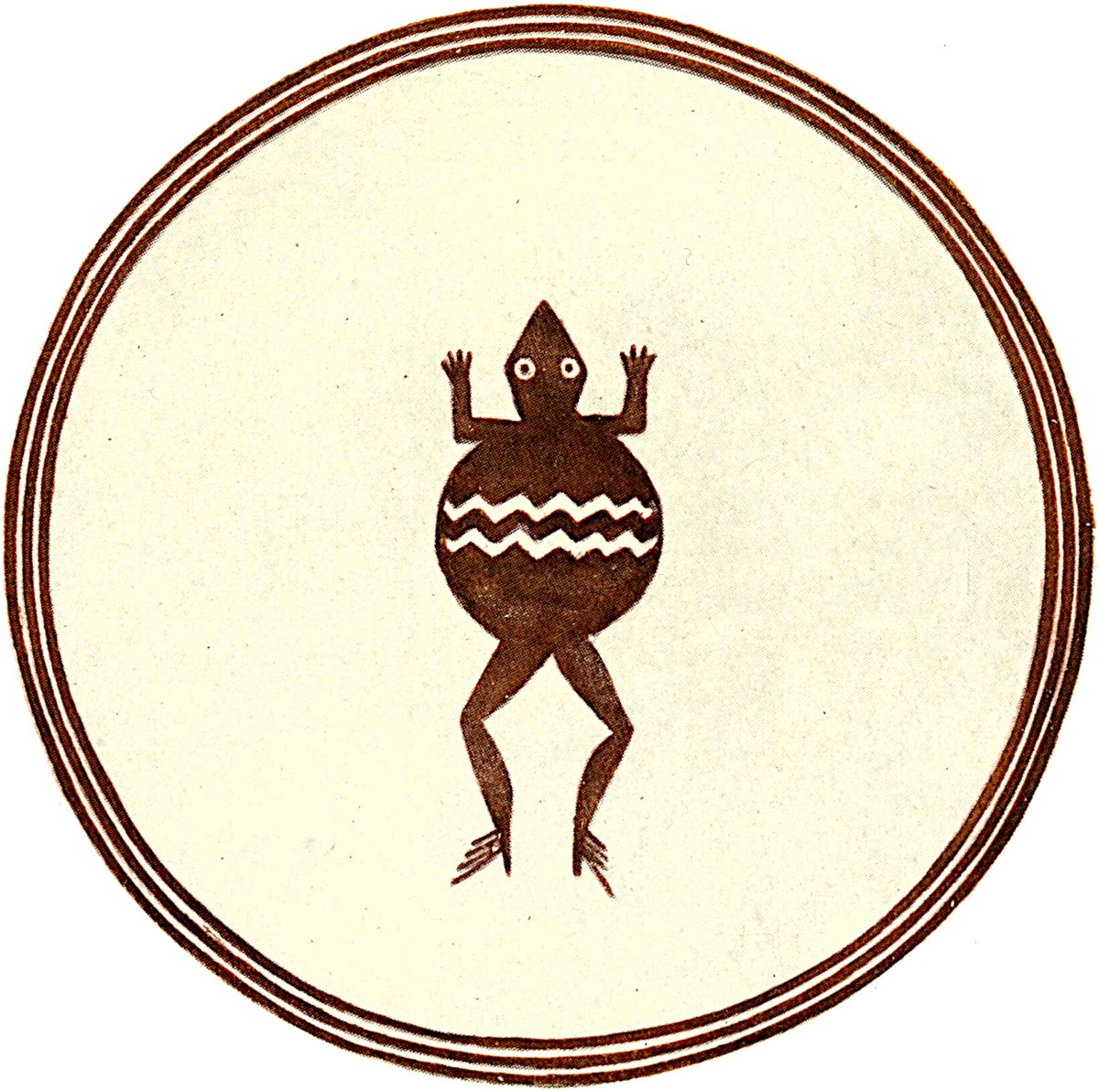 On another bowl (pl. 6, fig. 2) there is depicted a frog very like that last mentioned. The frog being an amphibian was undoubtedly greatly reverenced by the ancient people of the Mimbres Valley.