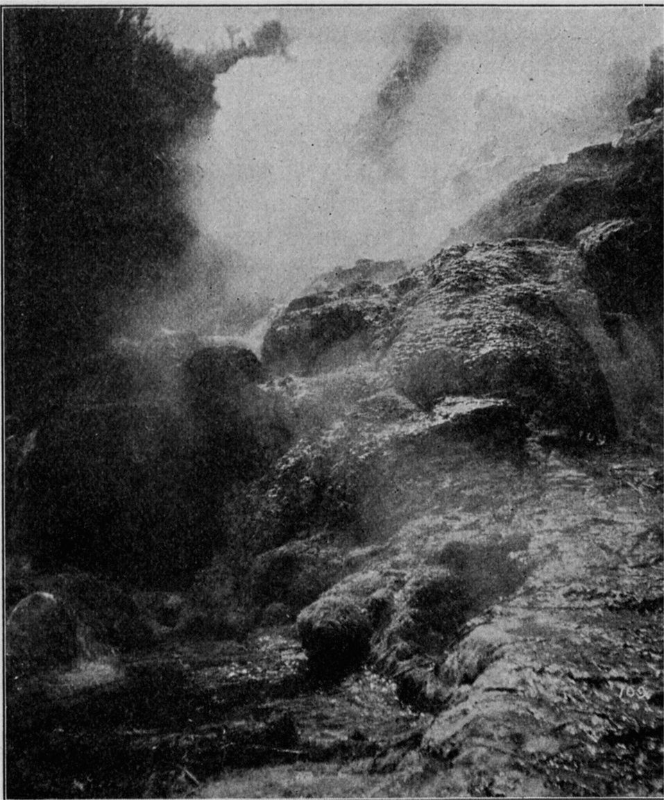 Many of the streams are perennial, and their waters are conducted away to be used in irrigation, thus bringing under cultivation nearly every part of the island. Moreover, the streams themselves hold fertilizing material much of which has been thrown out by volcanoes. The irrigating water itself furnishes sufficient enrichment for the soil, and but very little fertilizing is required. The heat, moisture, and fertile soil, coupled with skilful farming, produce bountiful harvests and make the whole island a smiling field of verdure and plenty.