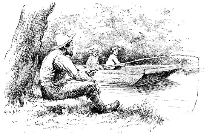 They passed a white man who was sitting on the river bank, with his coat off, fishing.