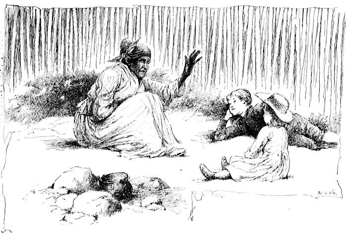The old negro paused and looked through the fence at the little children, and then he went on his way. But the youngsters saw Daddy Jake, and went running after him.
