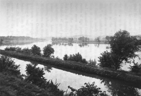 The line westward from Lancaster crosses one long ridge-like hill after another stretching broadly 284 over the country, and finally comes to the outlying ridge of the Allegheny range, the South Mountain, beyond which is the great Appalachian Valley. One railroad route boldly crosses this mountain through the depressions in the Conewago hills, where the picturesque Conewago Creek, the Indian "long reach," flows down its beautiful gorge to the Susquehanna, and this railroad finally comes out on that river at Middletown below Harrisburg; the other route follows a more easy gradient westward ten miles to Columbia, and this is used by the heavier freight trains. Coming towards it over the hills, the wide Susquehanna lies low in its broad valley, enclosed by the distant ridge of the Kittatinny bounding Cumberland County beyond the river. As it is approached, the thought is uppermost that this is one of the noblest, and yet among the meanest rivers in the country. Rising in Otsego Lake in New York, it flows over four hundred miles down to Chesapeake Bay, receives large tributaries, its West Branch being two hundred miles long, rends all the Allegheny Mountain chains, and takes a great part of the drainage of that region in New York and Pennsylvania, passes through grand valleys, noble gorges and most magnificent scenery, and yet it is so thickly sown with islands, rocks and sand-bars, rapids and shallows, as to defy all attempts to make it satisfactorily navigable excepting by lumber rafts, logs and a few canal boats. Thus the Indians significantly 285 gave its name meaning the island-strewn, broad and shallow river, and it is little more than a gigantic drain for Central Pennsylvania.