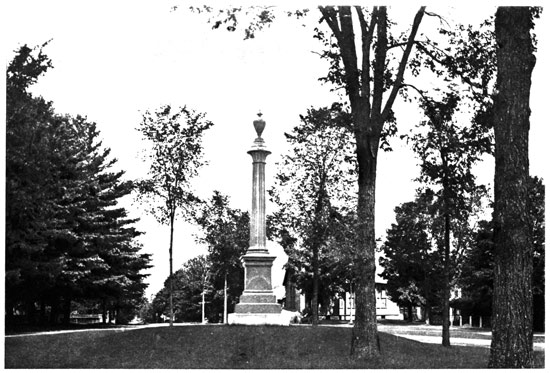 Journeying southward up the Hoosac through its picturesque valley, the narrow, winding stream turns many mills, while "Old Greylock, cloud-girdled on his purple throne," stands guardian at its northern verge. There are various villages, mostly in decadence, many of their people having migrated, and the mills have to supplement water-power with steam, the drouths being frequent. Of the little town of Adams on the Hoosac, Susan B. Anthony was the most famous inhabitant, and in Lanesboro "Josh Billings," then named H. W. Shaw, was born in 1818, before he wandered away to become an auctioneer 246 and humorist. The head of the Hoosac is a reservoir lake, made to store its waters that they may better serve the mills below, and almost embracing its sources are the branching head-streams of the Housatonic, which flows to the southward. This part of the intervale, being the most elevated, is a region of sloughs and lakes, from which the watershed tapers in both directions. Upon this high plateau, more than a thousand feet above the tidal level, is located the county-seat of Berkshire, Pittsfield, named in honor of William Pitt, the elder, in 1761. The Boston and Albany Railroad crosses the Berkshires through the town, and then climbing around the Hoosac range goes off down Westfield River to the Connecticut at Springfield. The Public Green of Pittsfield, located, as in all New England towns, in its centre, is called the "Heart of Berkshire." Upon it stands Launt Thompson's noted bronze statue of the "Color-Bearer," cast from cannon given by Congress,—a spirited young soldier in fatigue uniform, holding aloft the flag. This statue is reproduced on the Gettysburg battlefield, and it is the monument of five officers and ninety men of Pittsfield killed in the Civil War. At the dedication of this statue was read Whittier's eloquent lyric, "Massachusetts to Virginia," which was inspired by the "Latimer fugitive slave case" in 1842. An owner from Norfolk claimed the fugitive in Boston, and was awarded him by the courts, but the decision caused so much excitement 247 that the slave's emancipation was purchased for $400, the owner gladly taking the money rather than pursue the case further. Thus said Whittier: