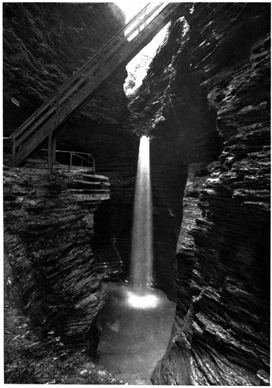 The southwestern corner of Massachusetts, projecting westward into New York outside the Connecticut boundary, is known as Boston Corner. To the southward, in the northwestern corner of Connecticut, is Salisbury, where the Taghkanic range falls away into lower hills. Beecher described this country as a constant succession of hills swelling into mountains, and of mountains flowing down into hills. This is a quiet region, formerly a producer of iron ores, and it was early settled by the Dutch, who came over from the Hudson in 1720. They were a timid race, however, fearing the rigors of climate, and, coming thus to the edge of what looked like an Alpine land of dreariness beyond, they would not venture farther into the forbidding hills. The mountainous region to the north and east they inscribed on their maps as a large white vacant space, which they coolly named "Winterberg." The township has two noted ravines, solitary, rugged and attractive, and both containing cascades. In one to the westward is the celebrated Bash-Bish Falls, and the other to the northward is Sage's Ravine, just beyond it being Norton's Falls. The Bash-Bish is said to have got its name in imitation of running, falling waters. It descends nearly five hundred feet in cataracts and rapids, the finest cascades in the Berkshires, and then flows out westward to the Hudson. The Housatonic, going southward 263 through Salisbury, plunges down its Great Falls over rocky ledges for sixty feet descent, making a tremendous noise and a fine display. To the eastward of the Housatonic Valley, at an elevation of eleven hundred feet, on a broad plateau, is Litchfield, consisting chiefly of two broad, tree-shaded streets crossing at right angles, the chief buildings fronting on the central village Green. On the southwestern outskirts is Bantam Lake, the largest in Connecticut, covering a little over a square mile of surface. The most famous house in Litchfield, which has been moved, however, from its original location, is unpretentious, the old-time wooden mansion in which Rev. Lyman Beecher lived when pastor here, from 1810 to 1826, and where was born the famous authoress, Harriet Beecher, in 1812, who married Rev. Calvin E. Stowe, and the famous preacher, Henry Ward Beecher, in 1813. In the Wolcott House at Litchfield was born Oliver Wolcott, Secretary of the Treasury, he and his father both having been Connecticut Governors. To this house was brought, in the Revolution, the leaden statue of King George III., which stood on the Bowling Green of New York, to be melted into bullets. These were the favorite Indian hunting-grounds of Bantam around the lake, and when Litchfield was first settled, about 1720, the village was surrounded by a palisade, lest the savages should return to their coveted region to take forcible possession. Litchfield for a half-century 264 after the Revolution had the most noted law school in America. To the northward, at Wolcottville, where there are now large factories, lived Captain John Brown, a noted Revolutionary soldier, and here was born in 1800 his grandson, "Old John Brown of Osawatomie."