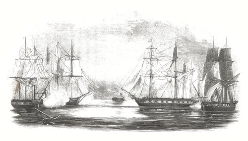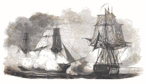 The Cabinet resolves to shut up our ships of war in port — Remonstrance of Captains Bainbridge and Stuart — Rodgers ordered to sea — Feeling of the crews — Chase of the Belvidere — Narrow escape of the Constitution from an English fleet — Cruise of the Essex — Action between the Constitution and Guerriere — Effect of the victory in England and the United States — United States takes the Macedonian — Lieutenant Hamilton carries the captured colors to Washington — Presented to Mrs Madison in a ball-room — The Argus — Action between the Wasp and Frolic — Constitution captures the Java — Hornet takes the Peacock — Effect of these Victories abroad, 125