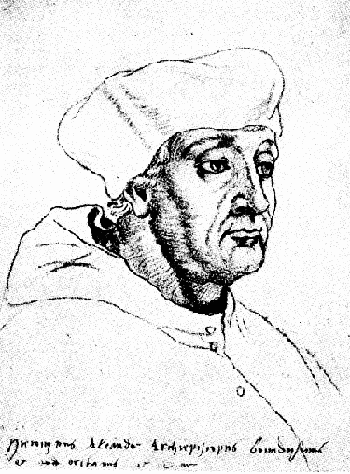 In the course of years those walls probably hemmed him in more and more closely. Neither learned and poetic correspondence nor the art of painting with which he occupied himself,[1] together with one Sasboud, could sweeten the oppression of monastic life and a narrow-minded, unfriendly environment. Of the later period of his life in the monastery, no letters at all have been preserved, according to Dr. Allen's carefully considered dating. Had he dropped his correspondence out of spleen, or had his superiors forbidden him to keep it up, or are we merely left in the dark because of accidental loss? We[Pg 16] know nothing about the circumstances and the frame of mind in which Erasmus was ordained on 25 April 1492, by the Bishop of Utrecht, David of Burgundy. Perhaps his taking holy orders was connected with his design to leave the monastery. He himself afterwards declared that he had but rarely read mass. He got his chance to leave the monastery when offered the post of secretary to the Bishop of Cambray, Henry of Bergen. Erasmus owed this preferment to his fame as a Latinist and a man of letters; for it was with a view to a journey to Rome, where the bishop hoped to obtain a cardinal's hat, that Erasmus entered his service. The authorization of the Bishop of Utrecht had been obtained, and also that of the prior and the general of the order. Of course, there was no question yet of taking leave for good, since, as the bishop's servant, Erasmus continued to wear his canon's dress. He had prepared for his departure in the deepest secrecy. There is something touching in the glimpse we get of his friend and fellow-poet, William Hermans, waiting in vain outside of Gouda to see his friend just for a moment, when on his way south he would pass the town. It seems there had been consultations between them as to leaving Steyn together, and Erasmus, on his part, had left him ignorant of his plans. William had to console himself with the literature that might be had at Steyn.