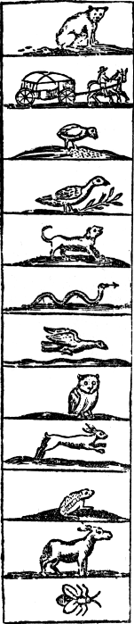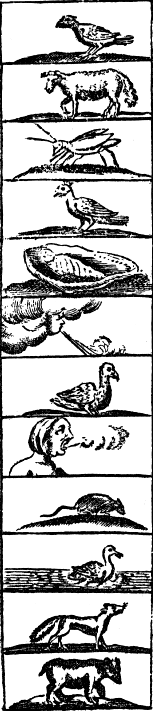 I. First it will afford a device for learning to read more easily than hitherto, especially having a symbolical alphabet set before it, to wit, the characters of the several letters, with the image of that creature, whose voice that letter goeth about to imitate, pictur’d by it. For the young Abc scholar will easily remember the force of every character by the very looking upon the creature, till the imagination being strengthened by use, can readily afford all things; and then having looked over a table of the chief syllables also (which yet was not thought necessary to be added to this book) he may proceed to the viewing of the Pictures, and the inscriptions set over ’em. Where again the very looking upon the thing pictured suggesting the name of the thing, will tell him how the title of the picture is to be read. And thus the whole book being gone over by the bare titles of the pictures, reading cannot but be learned; and indeed too, which thing is to be noted, without using any ordinary tedious spelling, that most troublesome torture of wits, which may wholly be avoided by this method. For the often reading over the Book, by those larger descriptions of things, and which are set after the Pictures, will be able perfectly to beget a habit of reading.