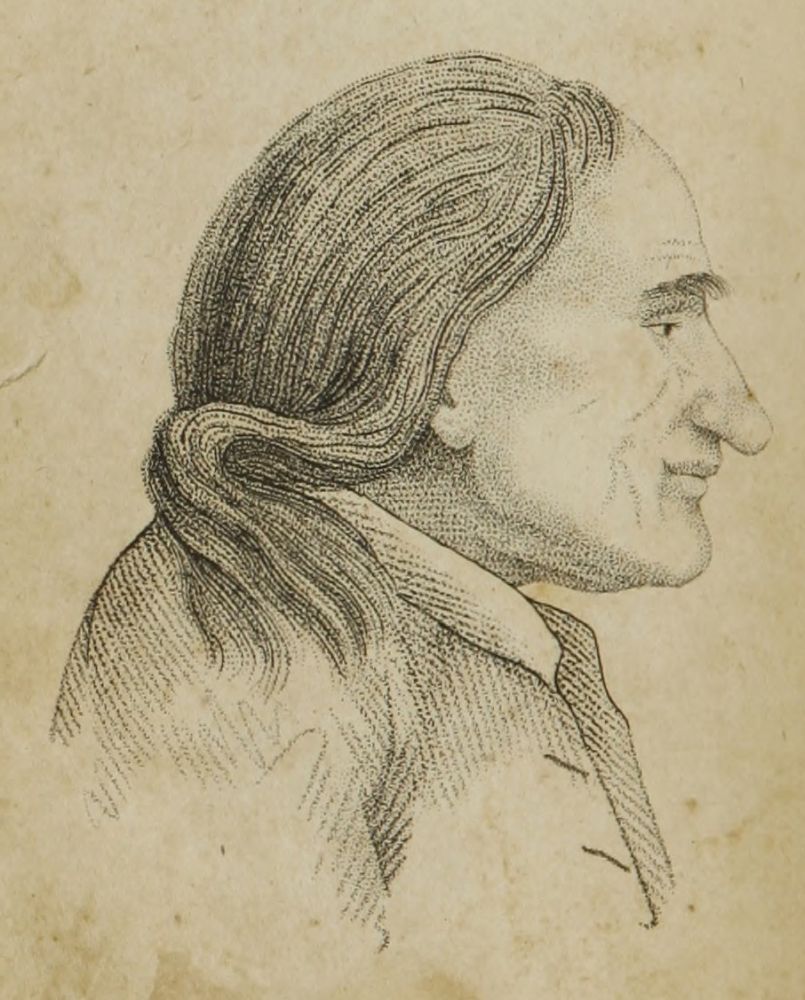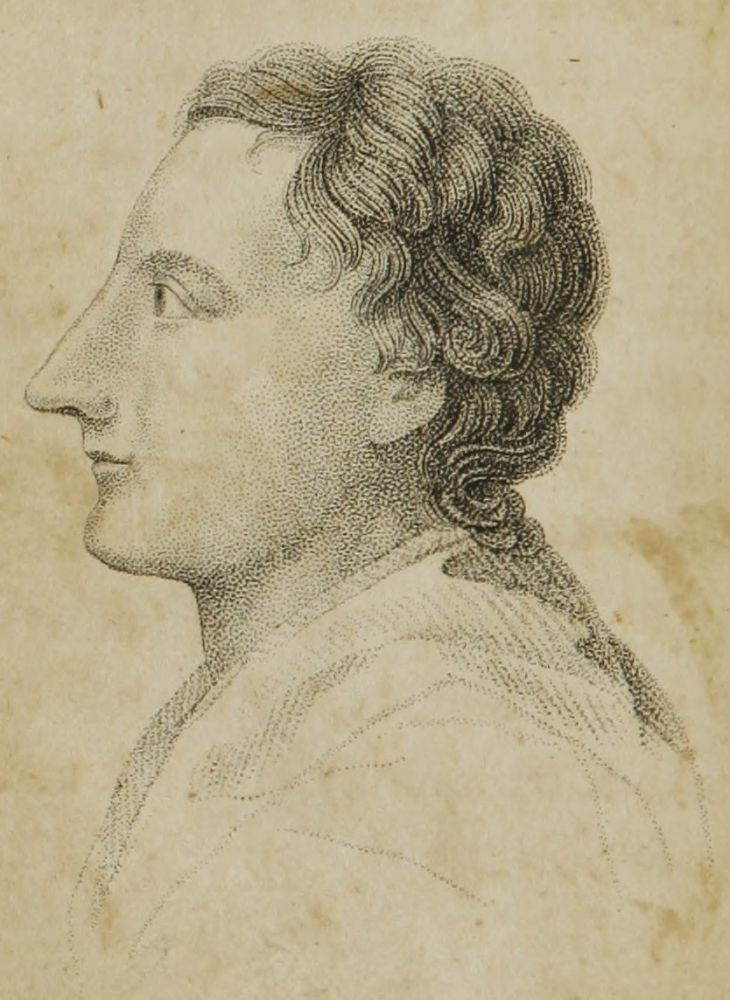 A receding forehead, eyes black, and full of fire, their shape, the form of the upper eyelid, an aquiline nose, and a large and projecting chin, are here characteristic of a passionate man. The chin designates an enterprising character, the nose denotes an ardent imagination, and lively passions, beyond the control of reason, and the forehead affords no inference of a reflecting mind.