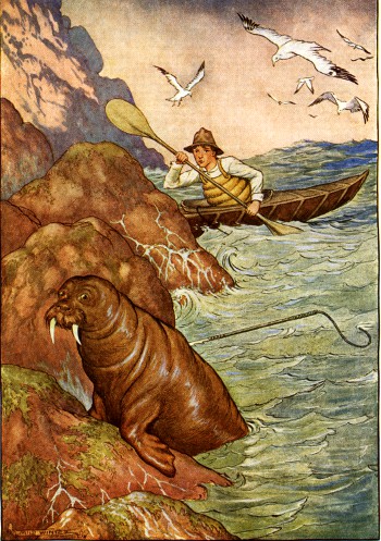 Evening was drawing on and our day's work over; the rest of us were strolling up and down upon the beach, enjoying the cool sea breeze. They loaded and ran out their guns, and paddling off with an empty tub in the cajack, placed it out at sea as a mark for practice. They returned and fired, and the barrel flew in pieces, and then, with a shout of triumph, they cleaned the guns and ran them in.