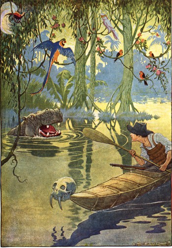 Up rose the hideous head and gaping jaws of a hippopotamus