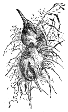 Mr. A. "I can tell you what that bird was—a kingfisher, the celebrated halcyon[A] of the ancients, [12] about which so many tales are told. It lives on fish, which it catches in the manner you saw. It builds in holes in the banks, and is a shy, retired bird, never to be seen far from the stream where it lives."