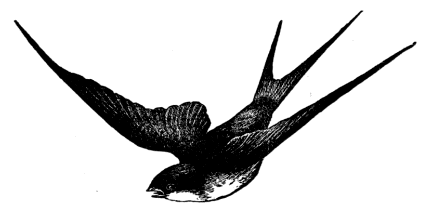 William. "There were a great many swallows, too, sporting upon the surface of the water, that entertained me with their motions. Sometimes [13] they dashed into the stream; sometimes they pursued one another so quick, that the eye could scarcely follow them. In one place, where a high, steep sandbank rose directly above the river, I observed many of them go in and out of holes with which the bank was bored full."