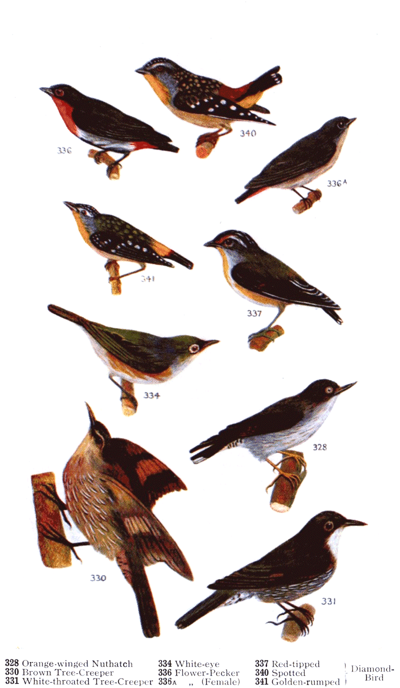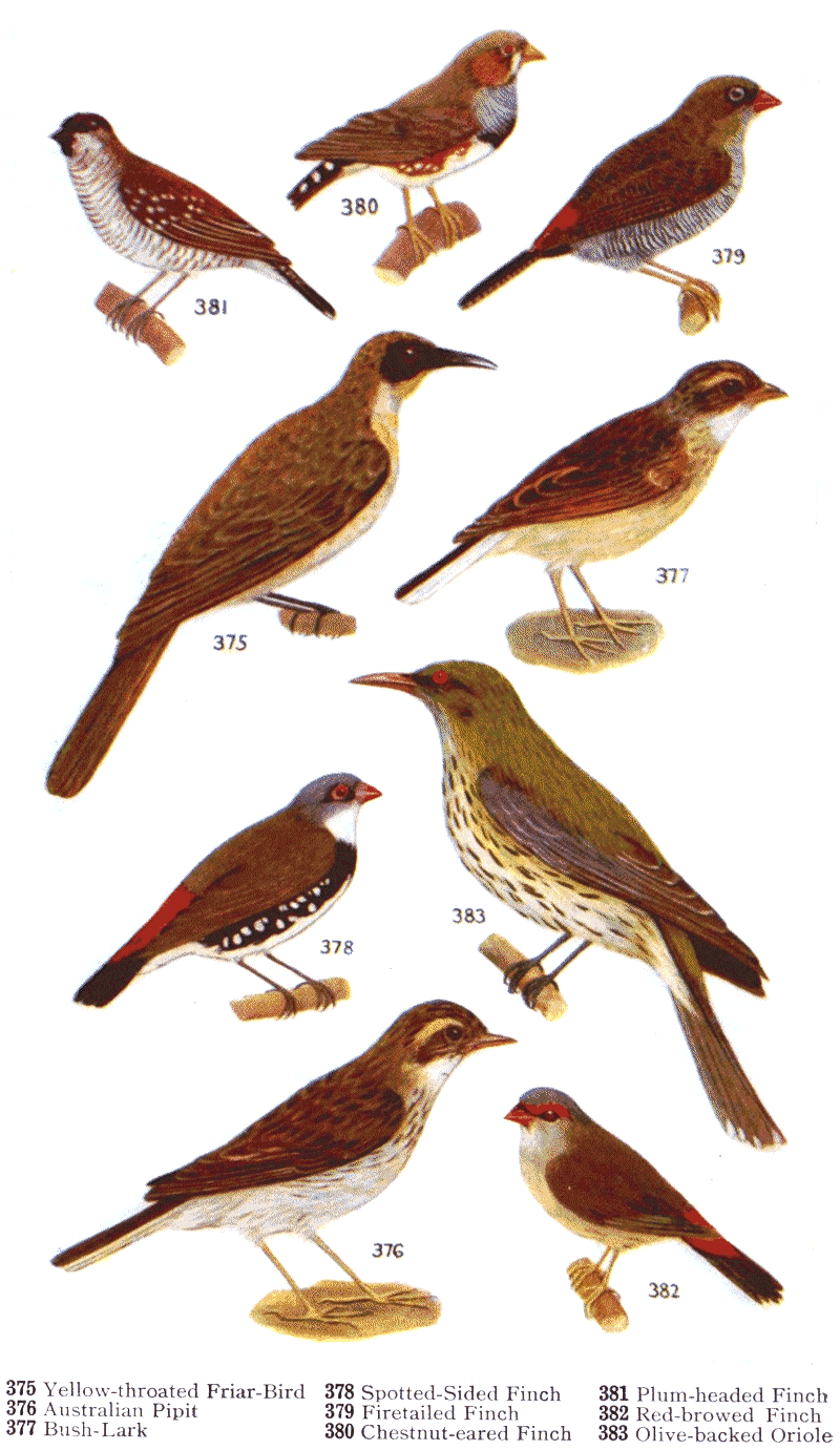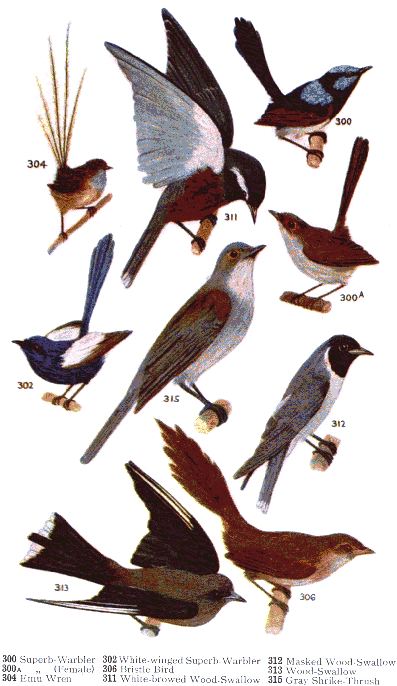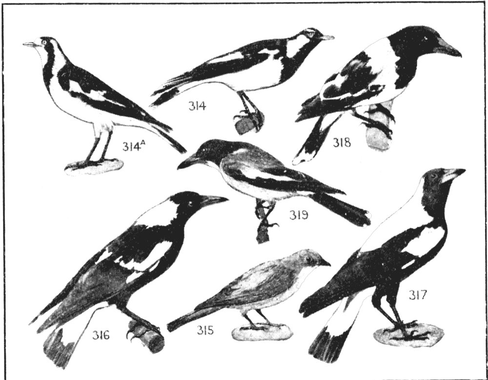 Illustrations from Specimens (318) in the National Museum, Melbourne; the balance mostly from Specimens in the Entomological Museum, C. French (59), and in the collections of A. Coles, Taxidermist, (36), C. F. Cole, and D. Le Souëf. Twenty-two birds were photographed from Gould's "Birds of Australia," five from drawings specially prepared by C. C. Brittlebank, the well-known naturalist-artist, and one from the Report of the Horn Expedition.