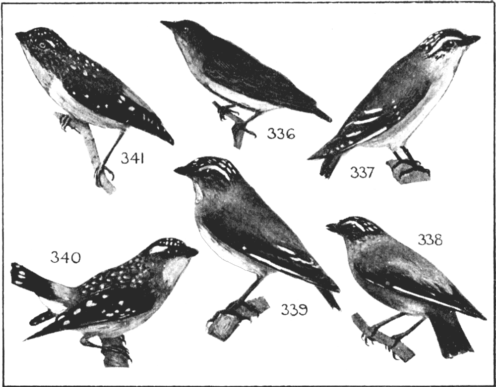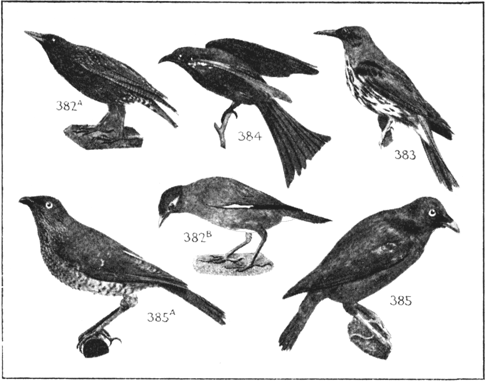 This book is a field guide. The pages were divided vertically, with the tabular matter on the top half, and the Lecture on the bottom half of the page. The ebook has been re-arranged so that the separate parts have a smoother flow. The top parts of the pages have been left intact, but the bottom parts have been collected together and moved, so that the Lecture text for each ORDER precedes the tabular listing and descriptions for that ORDER. The only exception is for ORDER XXI. ORDER XXI.—Perching-Birds—contains 11,500 species, more than three-fifths of the world's 19,000 birds. It has been arranged into sets of suitable groups of FAMILIES, to make it easier to access. Visible page numbers have been omitted from the Lecture sections, but the Lecture page numbers are still accessible through the blue clickable links in the General INDEX.NAMES RECENTLY AMENDED (located after the INTRODUCTION). It seems important to have these new names available, so they have been added to (e.g.) 20 Slate-breasted Rail .... as [~20 Rallus pectoralis.] so: 20 Slate-breasted Rail (Short-toed), Lewin Water-Rail,