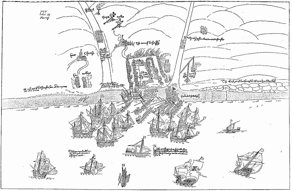 Brighthelmstone had yet another hostile visit from the French, and to this we are indebted for the earliest recorded view of the town. It occurred in 1545, and Holinshed gives us the following short and pithy account of the affair.