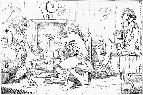 [64] Gillray caricatured him (May, 1792) in 'Le Cochon et ses deux Petites,' where, holding a tumbler of wine in his hand, he is toying with two very fleshly ladies.