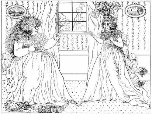 [78] On June 1, 1812, Town Talk published a satirical print, Worse and Worse, or the Sports of the 19th Century.' Mrs. Fitzherbert and Lady Hertford are playing at shuttlecock with the Prince of Wales's feathers. Mrs. F. says, 'This shuttlecock is too light for me. I'll have no more to do with it.' Lady H. calls out, 'You have play'd with it till you are tired, but it suits me to a nicety; the game's mine. Y—h, take care of the shuttlecock.' Lord Yarmouth, who is behind Mrs. F., says, 'O yes, Ma'am, I'll take care of the shuttlecock, I warrant you.'