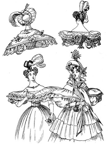 "August 3, 1830.—I went, yesterday, to the sale of the late King's wardrobe, which was numerous enough to fill Monmouth Street, and sufficiently various and splendid for the wardrobe of Drury Lane. He hardly ever gave anything away, except his linen, which was distributed every year. These clothes are the perquisites of his pages, and will fetch a pretty sum. There are all the coats he has ever had for fifty years; three hundred whips, canes without number, every sort of uniform, the costumes of all the orders in Europe, splendid furs, pelisses, hunting-coats and breeches, and, among other things, a dozen pair of corduroy breeches he had made to hunt in, when Don Miguel was here. (p. 4) His profusion in these articles was unbounded, because he never paid for them, and his memory was so accurate, that one of his pages told me he recollected every article of dress, no matter how old, and that they were always liable to be called on to produce some particular coat, or other article of apparel of years gone by."