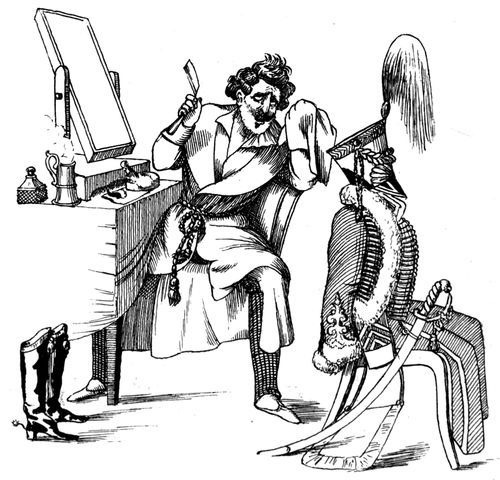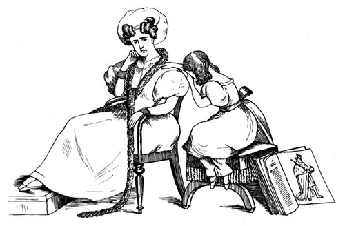 (p. 355) "The author, amongst the favours of this kind that have been conferred upon himself, once received a Dulcinea who, in addition to her other finery, brought such a cargo of hair, tooth and nail brushes, Macassar and other hair oils, otto of roses and botanical creams, cosmetics and scented soaps, that she might have commenced as a dealer in perfumery. She would have spent half her time at her toilette, and the rest in playing off the airs of a fine lady! She was quite indignant at not being allowed an exclusive dressing-room; and the more so as the dear doctor, during the passage, had considered her much too delicate to endure any sort of hardship, and had been so kind and considerate as to insist upon her using two kinds of tooth brush, lest the hardness of that first applied should injure the enamel of her teeth!"