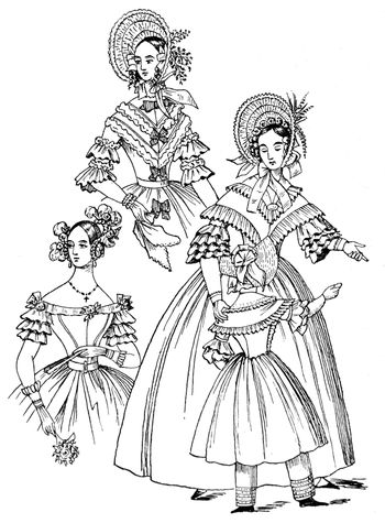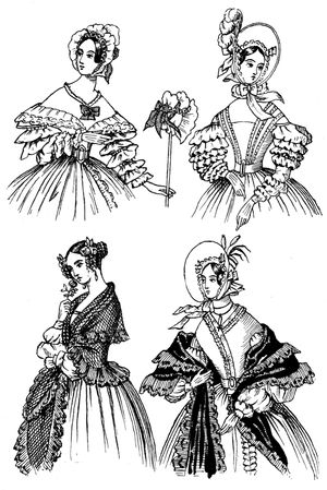 "With rich silk dresses, bonnets a la mode, ear pendants three inches long, gorgeous shawls and splendid veils, silk stockings, kid gloves, and parasols in hand, dispensing sweet odours from their profusely perfumed forms, they disembark, and are assigned as servants and distributed to the expectant settlers.