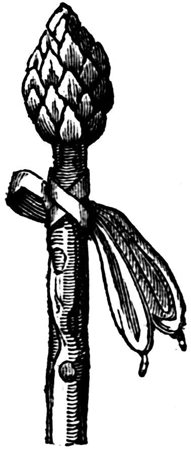 This custom explains the origin and meaning of the Thyrsus of Bacchus, which appears to have been a spear entwined with leaves or a fillet, and surmounted with a Fir cone; thus,