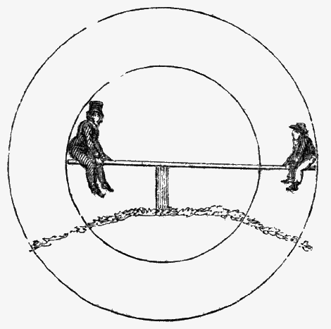Mr. Seymour continued--“The various balancing toys will elucidate the nature of the centre of gravity, point of suspension, and line of direction: the seesaw, rocking-horse, and the operation of walking on stilts, will here come in aid of our explanations. The combined effects of momentum and a change in the centre of gravity of a body may be beautifully exemplified by the action of the Chinese Tumblers. The sling will demonstrate the existence and effect of centrifugal force; the top and tetotum will prove the power of vertiginous motion to support the axis of a body in an upright position. The trundling of the hoop will accomplish the same and other objects. The game of bilboquet, or cup and ball, will show the influence of rotatory motion in steadying the rectilinear path of a spherical body, whence the theory of the rifle-gun may be deduced. For conveying some elementary ideas of the doctrine of oscillation, there is the swing. The flight of the arrow will not only elucidate the principles of projectiles, but will explain the force of the air in producing rotatory motion by its impact on oblique surfaces: the revolution of the shuttlecock may be shown to depend upon the same resolution of forces. Then comes the kite, one of the most instructive and amusing of all the pastimes of youth,--the favourite toy of Newton in his boyish days:[4]--its ascent at once developes the theory of the composition and resolution of forces, and explains various subordinate principles, which I shall endeavour to describe when we arrive at the subject. The see-saw will unfold the general principle upon which the Mechanical Powers are founded; and the boy may thus be easily led to the theory of the lever, by being shown how readily he can balance the heavier weight of a man by riding on the longer arm of the plank. The theory of colours may be pointed out to him as he blows his soap-bubbles;[5] an amusement which will, at the same time, convince him that the air must exert a pressure equally in all directions. For explaining the theory of sound, there are the whistle, the humming-top, the whiz-gig, the pop-gun, the bull-roarer, and sundry other amusements well known in the play-ground; but it is not my intention, at present, to enumerate all the toys which may be rendered capable of affording philosophical instruction; I merely wish to convince you that my plan is not quite so chimerical as you were at first inclined to believe.”
