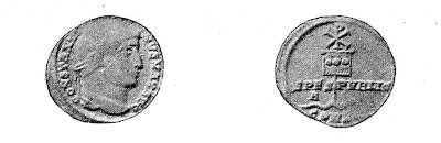 | COPPER DENARIUS OF CONSTANTINE THE GREAT, SHOWING THE LABARUM | 324 | |