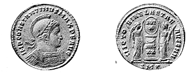 | DOUBLE SOLIDUS OF CONSTANTIUS II., WITH THE LABARUM | 324 | |