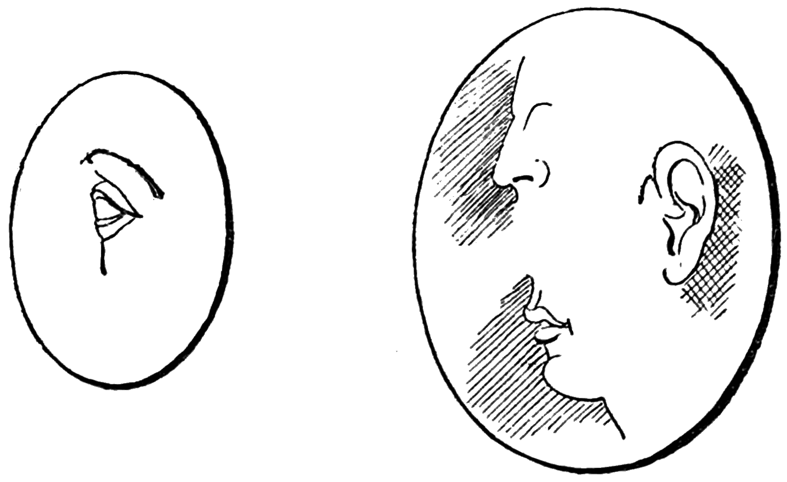 The depth of white upon a piece of shell is insufficient to cut a face in relief, except for very small heads, which would be quite beyond the skill of a beginner. There is a beauty as well as character in the profile completely lost in the full face; yet photographers are greatly disinclined to make a carte-de-visite of the profile.